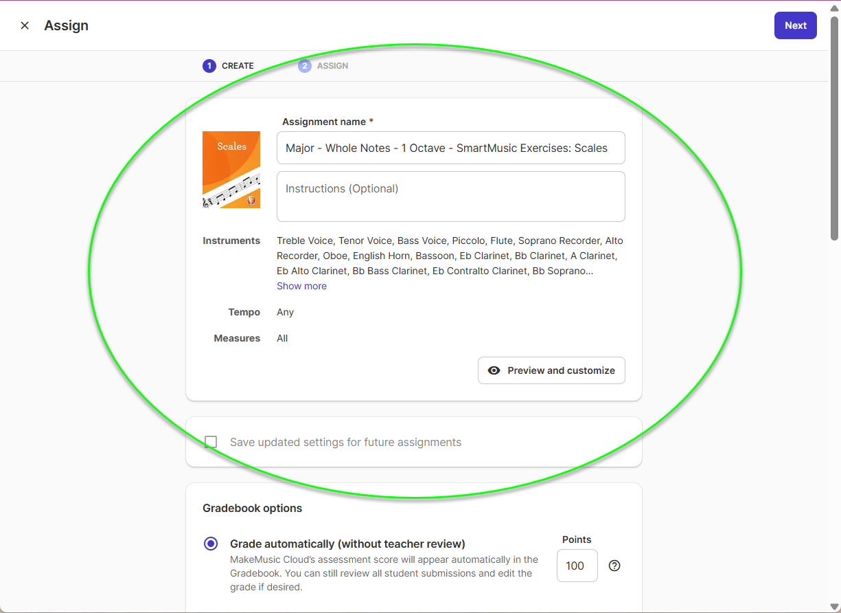- Step 3: customize assignment name, instructions, and parameters.
