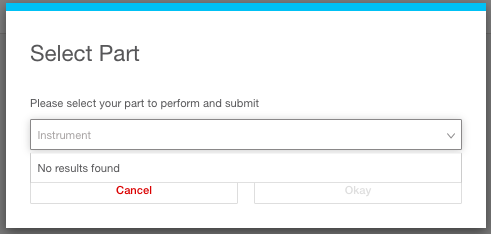 When my students are asked to select an instrument in the drop-down menu after choosing an assignment to complete, the pop window only shows "No results found". I have not had this issue until this semester. Only some students in my classes are experiencing this issue. It appears to be random. Any suggestions on how to fix this issue would be highly appreciated.